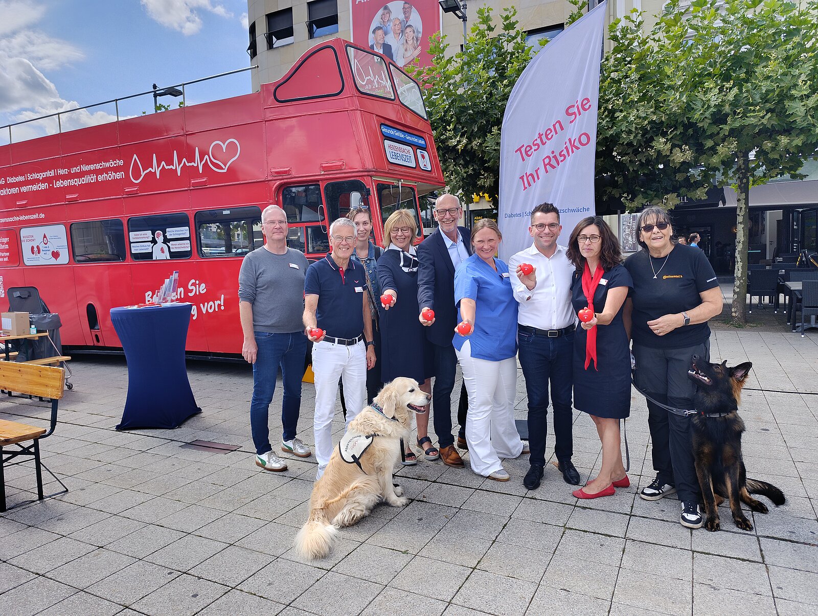 Zum ersten Mal machte der rote Infobus zur Aufklärungsinitiative „Herzenssache Lebenszeit“ am 22.08. in Saarlouis auf dem Kleinen Markt Station. Unser engagiertes Team, das den Tag organisiert hatte, freute sich über enormen Zulauf und beantwortete in persönlichen Gesprächen viele Fragen zu den Themen Schlaganfall, Diabetes, Herz- und Nierenschwäche.